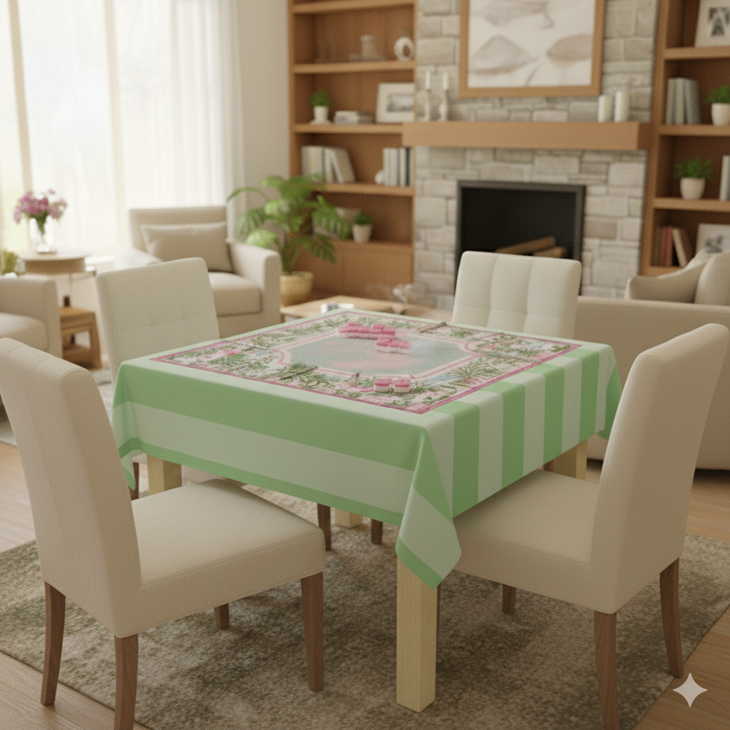 Green Menagerie Toile Mahjong Mat